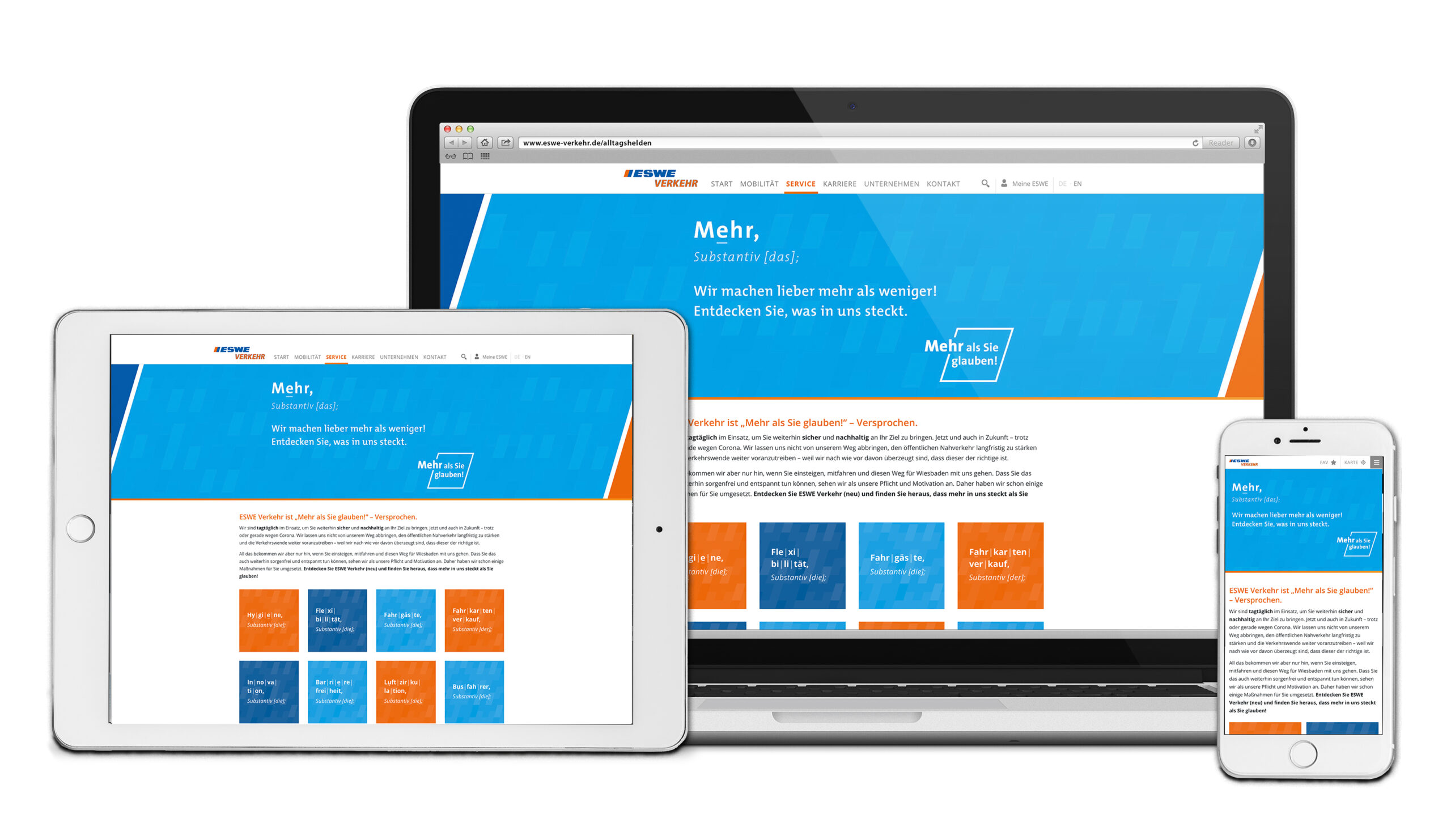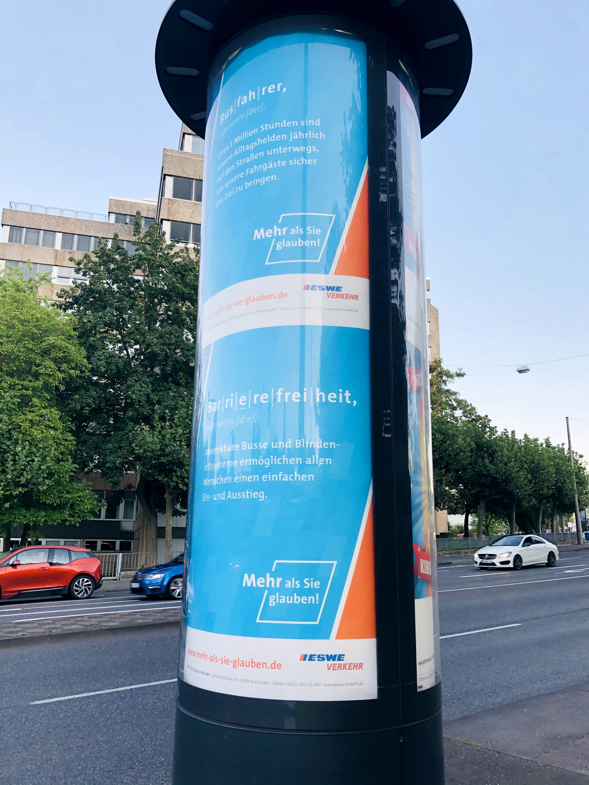 Das Ziel der Imagekampagne „Mehr als Sie glauben“ war es, den Bürgern Wiesbadens die Ziele und Leistungen von ESWE Verkehr näher zu bringen. Das klingt eigentlich ganz einfach, war aber tatsächlich viel mehr, als Sie glauben. Denn diese Imagekampagne wollte auch die Bemühungen berücksichtigen und die Fahrgäste aufklären, um sie in Krisenzeiten zurückzugewinnen. Mit anderen Worten: Es gab da wirklich eine Menge zu tun und ganz nebenbei auch eine zeitliche Punktlandung hinzubekommen. So etwas klappt nur mit vereinten Kräften 😉