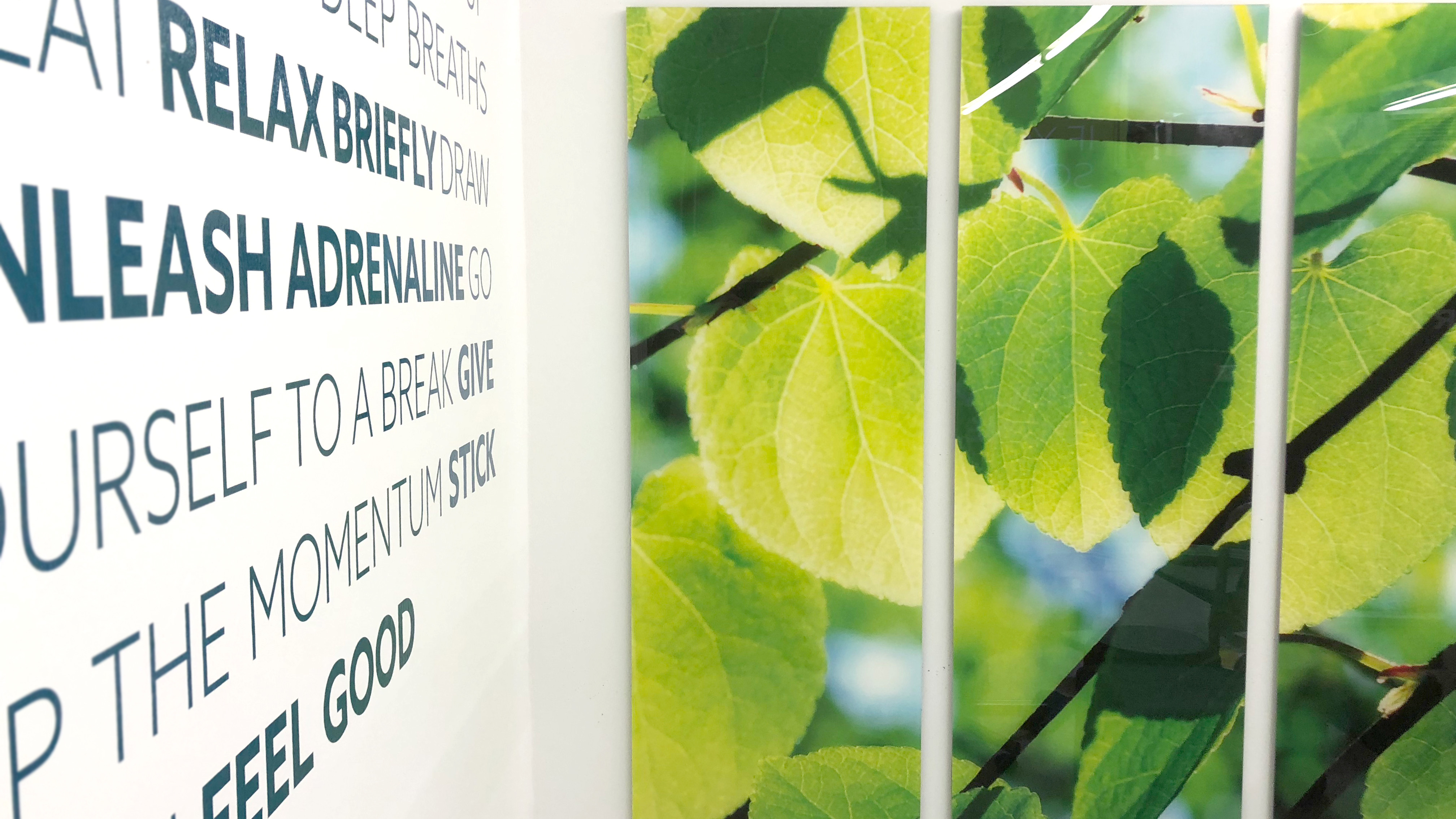 Bei diesem Job ging es auf allen Levels um Power. Um Energie. Letztendlich auch um Hub-Raum. Nein, nein, wir haben uns nicht mit Motor-Tuning beschäftigt, sondern mit strukturierter Raumgestaltung. Angefragt war ursprünglich die Wandgestaltung für den Fitnessraum der Mitarbeiter/innen, aber während wir uns dafür fit gemacht haben, wurde schnell klar, dass unser Work-out etwas weiter gehen musste. Die Räumlichkeiten waren zwar durchaus funktional genutzt, sollten von uns aber auch Schliff, Struktur und wirkliche Wohlfühl-Atmosphäre erhalten. Herausgekommen ist ein Raum mit Charakter, der zu sportiven Aktivitäten motiviert – und das bei einem überschaubaren finanziellen Einsatz. Wir sehen das sportlich und finden, das Resultat gibt uns recht.